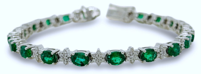 Oval Emeralds 19/6.72tw Round Diamonds 133/1.21tw G-H/VS2-SI1