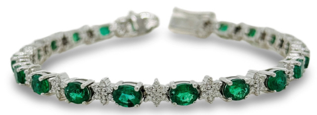 Oval Emeralds 19/6.88tw Round Diamonds 133/1.15tw G-H/VS2-SI1