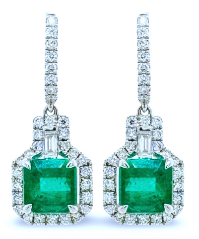 Square Emerald Cut Emeralds 2/2.08tw Round and Baguette Diamonds 42/.89tw G-H/VS2-SI1
