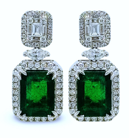Emerald Cut Emeralds 2/4.37tw Round , Marquise and Baguette Diamonds 120/.88tw G-H/VS2-SI1