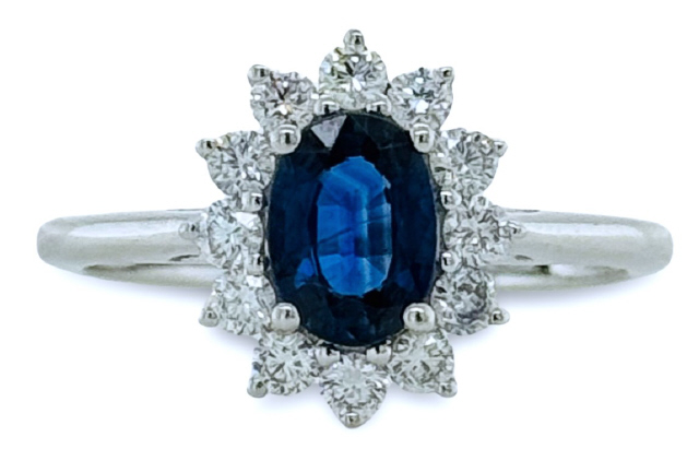 Oval sapphire 1/0.98ct Round diamonds 12/0.43tw G-H/VS2-SI1