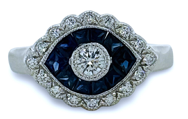 French cut sapphire 10/0.63tw Diamonds 17/0.30tw G-H/VS2-SI1