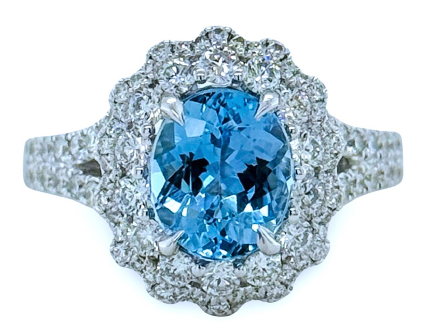 Oval Aqua 1.66ct Round Diamonds 88/.96tw G-H/VS2-SI1