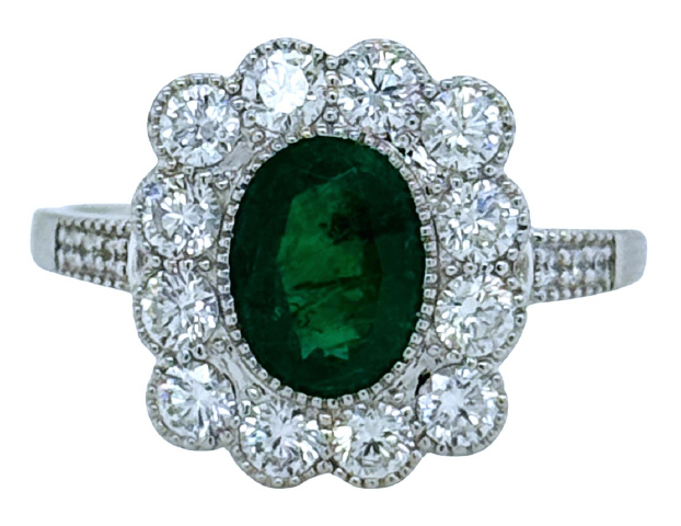 Oval Emerald 1.36ct Round diamonds 18/0.84tw G-H/VS2-SI1