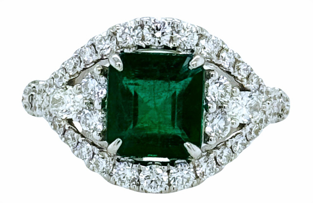 Square emerald 2.17ct Round diamonds 36/1.43tw G-H/VS2-SI1