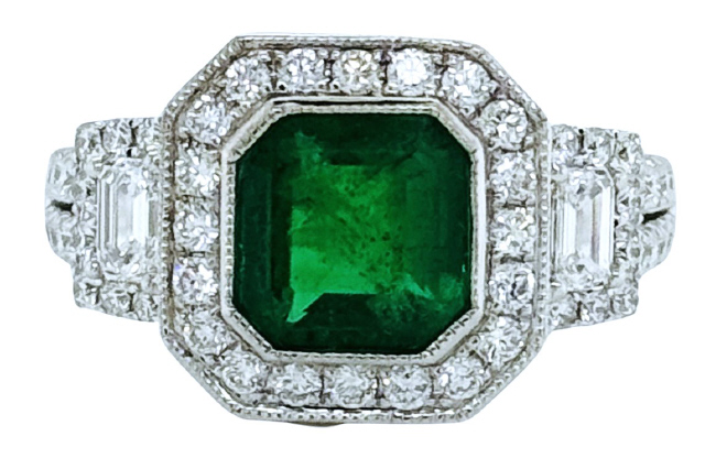 18kt white gold emerald and diamond ring