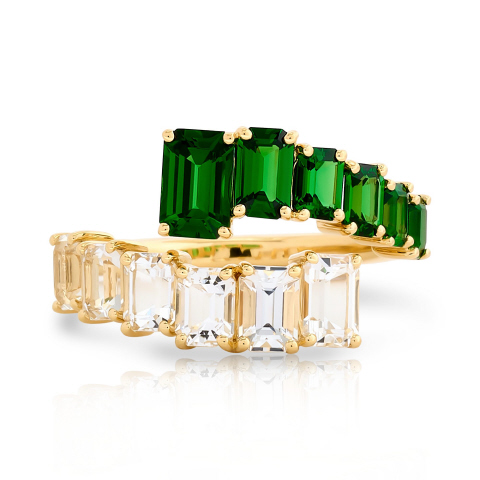 18kt yellow gold tsavorite and white topaz bypas ring.