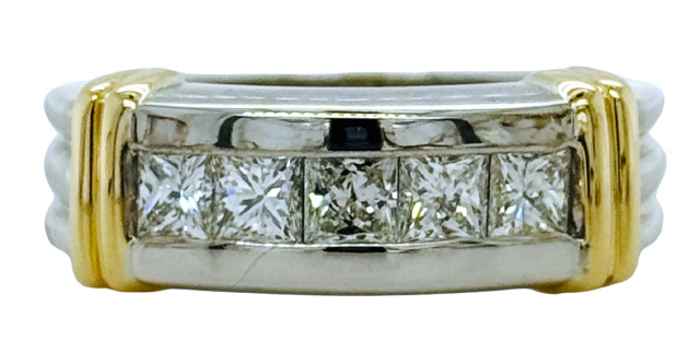 14kt two-tone princess cut diamond gents band