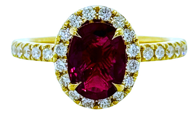 Oval ruby 1.78ct GIA Report#2239117724 Round diamonds 32/0.49tw G-H/SI1-SI2