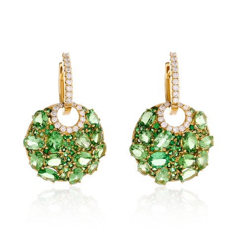 18kt yellow gold tsavorite and diamond dangle earrings.
