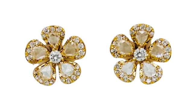 18kt yellow gold diamond flower earrings.