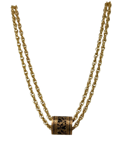 14kt & 10kt yellow gold watch chain with victorian slide