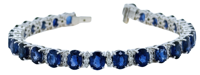 18kt white gold oval sapphire and diamond bracelet