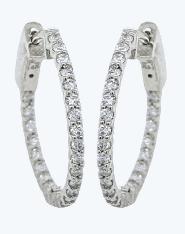 14kt white gold inside outside diamond small hoop earirngs
