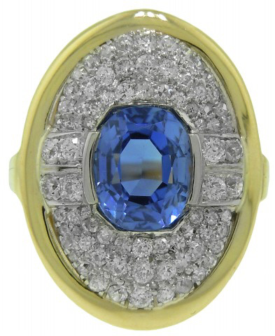 Oval sapphire=1/2.58cts Diamonds=76/1tw+/- F-G VS