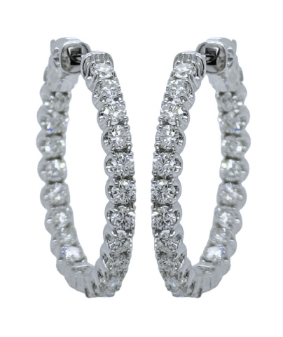 14kt white gold inside outside diamond hoop earrings