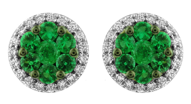 Round Emeralds 14/.72tw Round Diamonds 38/.31tw G-H/VS2-SI1